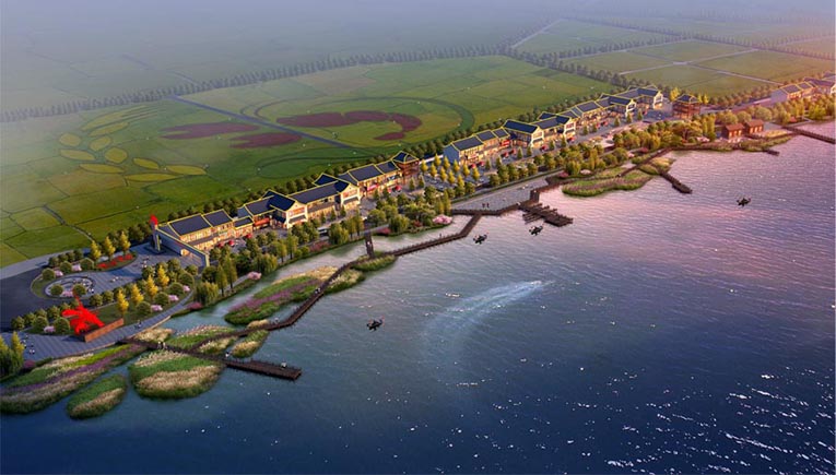 本次村庄规划范围 6.35 平方公里,主要内容包括村域土地规划、南山社区集中居民点详细规划、琴湖风情街详细规划、稻虾园详细规划和村委会环境整治规划四大部分组成。本次规划通过对村庄现有资源的挖掘,提出南山村以稻虾产业为主,蔬菜花卉种植为辅,一产二产三产、生产生活生态、创意科技人文,多维度全要素激活的国家级乡村振兴示范村。