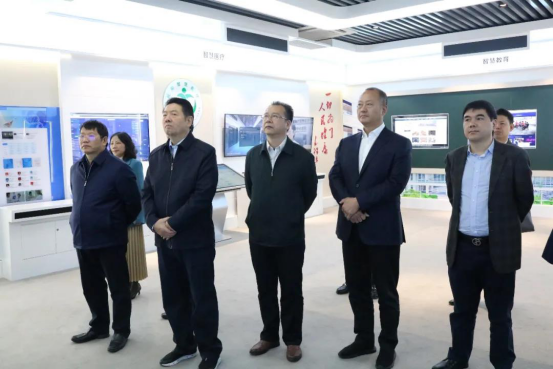 蒋作斌一行在研究院智慧城市展厅,观看“智慧益阳”近三年的建设情况,参观了解益阳新型智慧城市建设的一期建设成果。