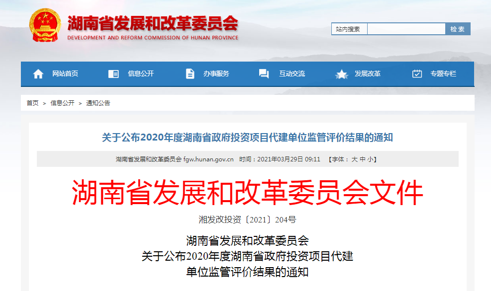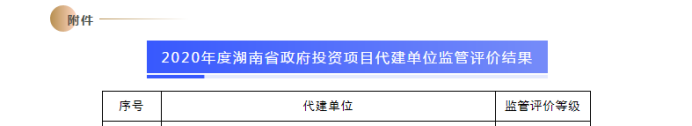 按照《湖南省政府投资项目代建单位监管评价办法(试行)》规定,省、市(州)、县(市、区)发展改革部门对全省代建项目及其代建单位投标行为进行监管评价。jdb电子设计院荣获2020年度湖南省政府投资项目代建单位监管评价A级,这是对设计院严格按照代建合同约定履行代建职责及执行工作流程的高度肯定。