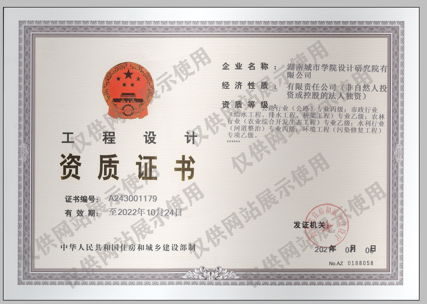 7月9日,经湖南省住房和城乡建设厅核准,jdb电子游戏官方网站设计研究院有限公司申报的水利行业(河道整治)专业丙级资质成功获批。