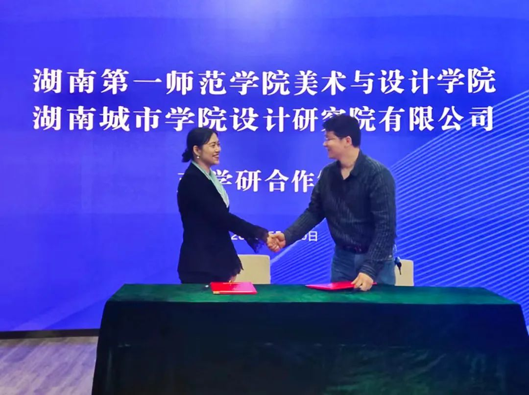 仪式上,湖南第一师范学院美术与设计学院与jdb电子游戏官方网站设计研究院有限公司签署了产学研合作协议,并聘任设计院院长李志学为“创新设计产学研究中心企业名师”。双方将通过深化校企合作,进一步深度拓展产学研融合,共享共赢。