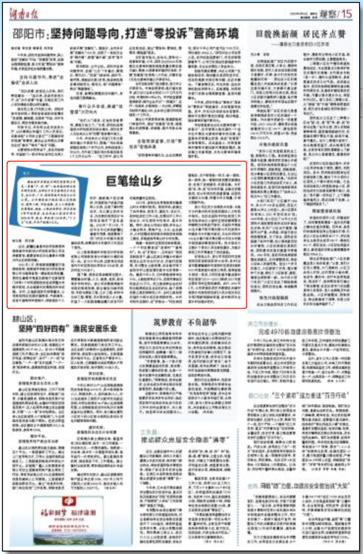 9月9日,《湖南日报》以“巨笔绘山乡”为题,专题报道jdb电子设计院乡村振兴工作,《新湖南》转载。