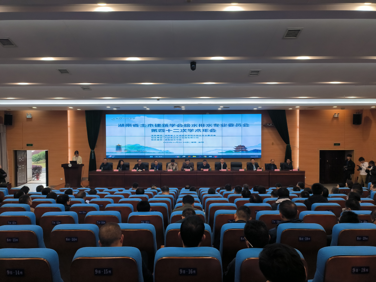 近日,由湖南省土木建筑学会给水排水专业委员会主办的第四十二次学术年会在jdb电子召开。副校长谭献良,益阳市住房和城乡建设局副局长周光辉,湖南省土木建筑学会秘书长袁佳弛出席会议。