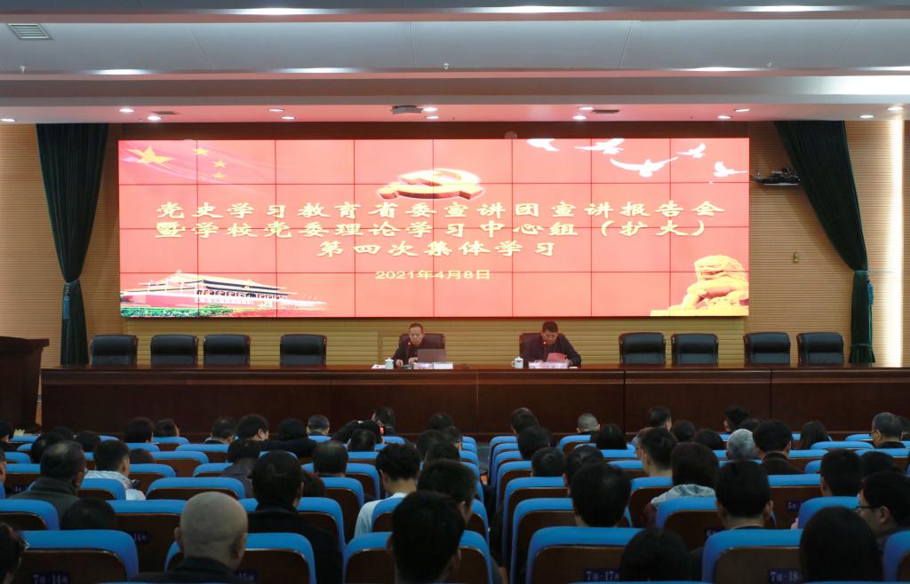 (转自学校官网)2021年4月8日下午,党史学习教育省委宣讲团宣讲报告会暨jdb电子游戏官方网站党委理论学习中心组(扩大)第四次集体学习在图书馆报告厅举行,省委宣讲团成员、省委宣传部部务会成员、二级巡视员刘新年为大家作了一场精彩的宣讲报告。党委书记罗成翼主持报告会,学校全体校领导、副处以上干部、学生辅导员、党支部书记以及学生代表三百余人聆听了报告。