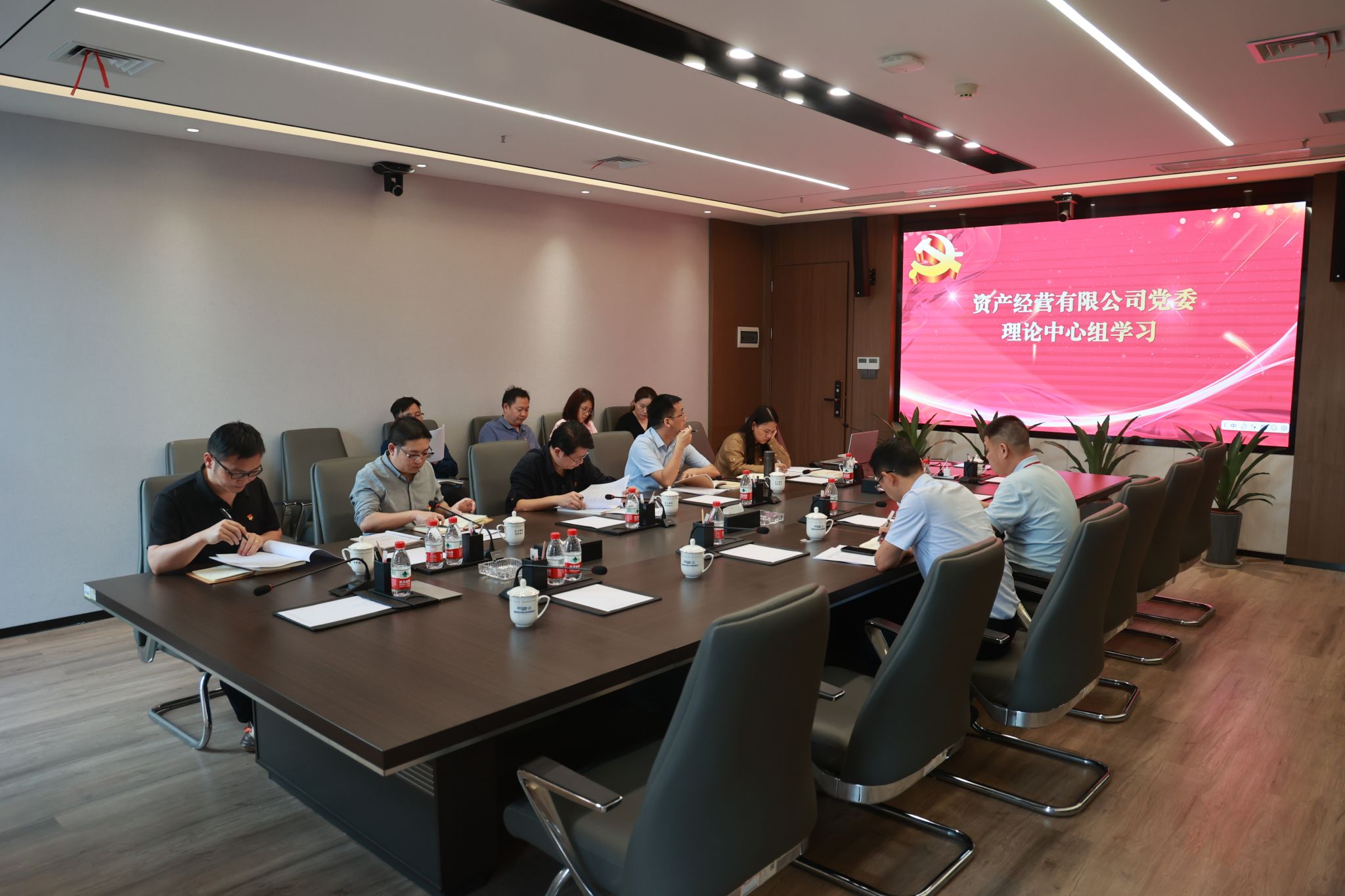 4月28日,资产经营有限公司在长沙会议室开展党委理论学习中心组2025年第五次集体(扩大)学习。党委书记李志学主持学习,公司党委理论学习中心组全体成员、全体支部书记参加。