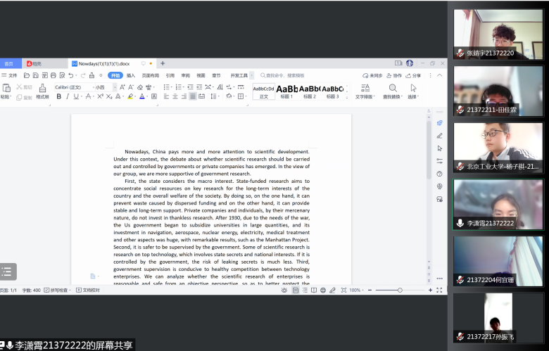 学院针对目前疫情防控期间的双校园办学、中外教师五地授课、存在时差等客观情况,在上课前摸底每个教师线上教学准备的情况,发布线上课程信息,测试授课平台,对线上课程经验不足的老师给予指导。在授课过程中抽查课堂教学活动,学院领导和管理人员每天按时抽查课堂情况,了解教师教学和学生线上学习的情况;教务专员进入每一堂线上课堂,全面摸排,掌握不同类型课程的线上教学情况。学院注重教风和学风建设,课后将发现的问题及时反馈给任课教师、班主任、辅导员、教务专员和学生。扎实、深入地推进线上教学工作,中外教师线上教学状态精神饱满,学生的到课率良好,学生线上互动有序,直播回放方便学生及时复习,查漏补缺,力争线上和线下教学同质等效。