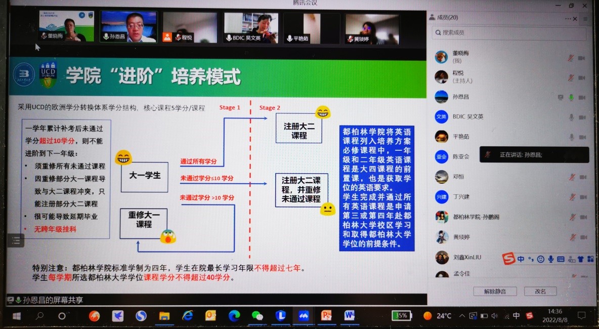 为加强世俱杯sjb官网班主任建设,提升新生班主任的整体水平,更好的服务于新生的教育和管理工作,2022年8月8日世俱杯sjb官网召开2022级新生班主任线上培训会议。学院党委书记/院长吴文英、党委副书记/副院长严海、教学副院长孙恩昌、2022级全体班主任、高年级班主任代表、教务专员,辅导员等参加了此次培训会,会议由教学副院长孙恩昌主持。