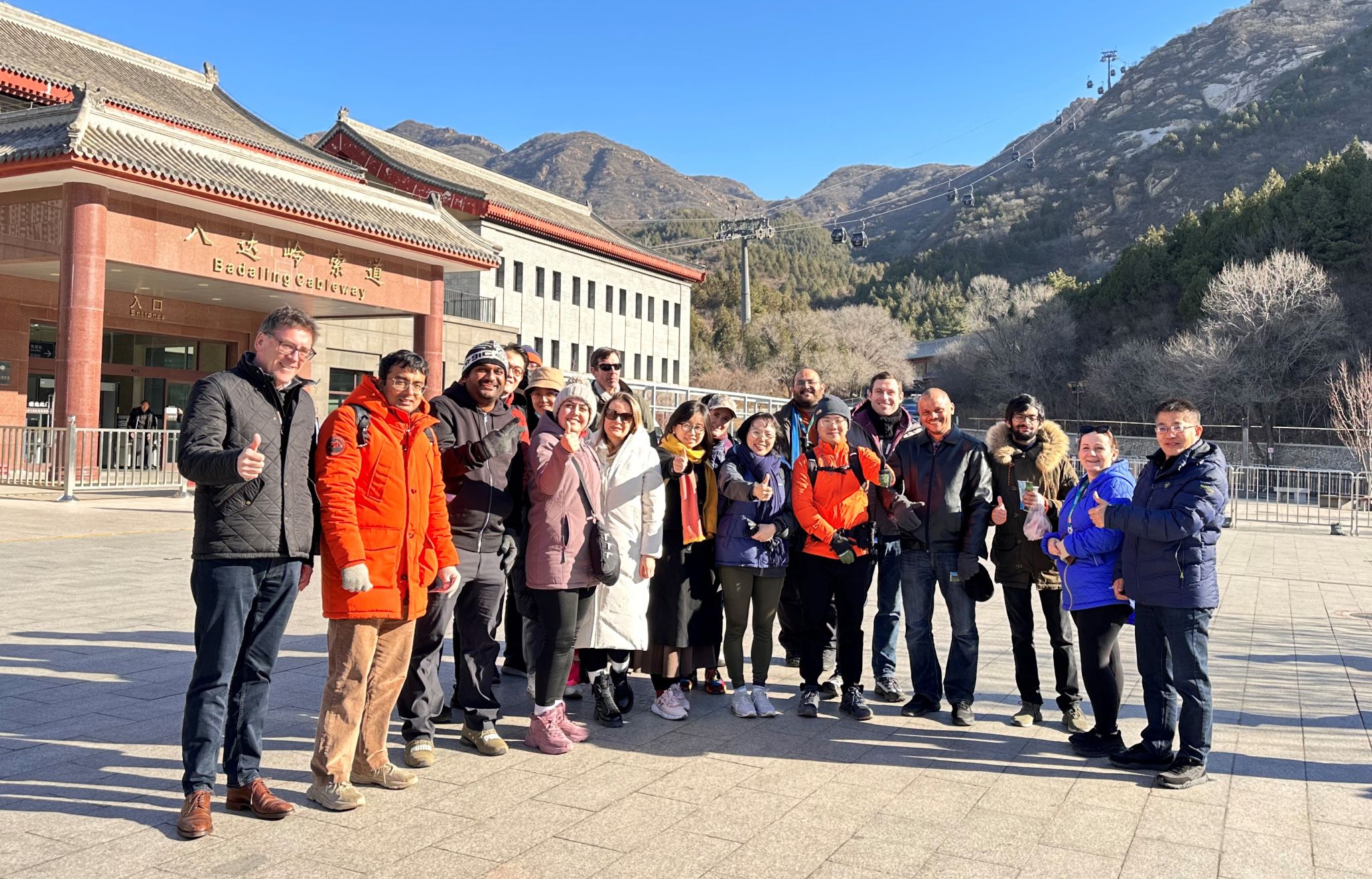 清晨,学院组织中外教师们从学校集合出发,乘车前往景区。途中,吴文英院长为中外教师们讲解了八达岭长城和明十三陵的历史和文化背景。抵达长城合影留念后,中外教师们结伴而行,一同游览长城美景,感受壮美风光。
