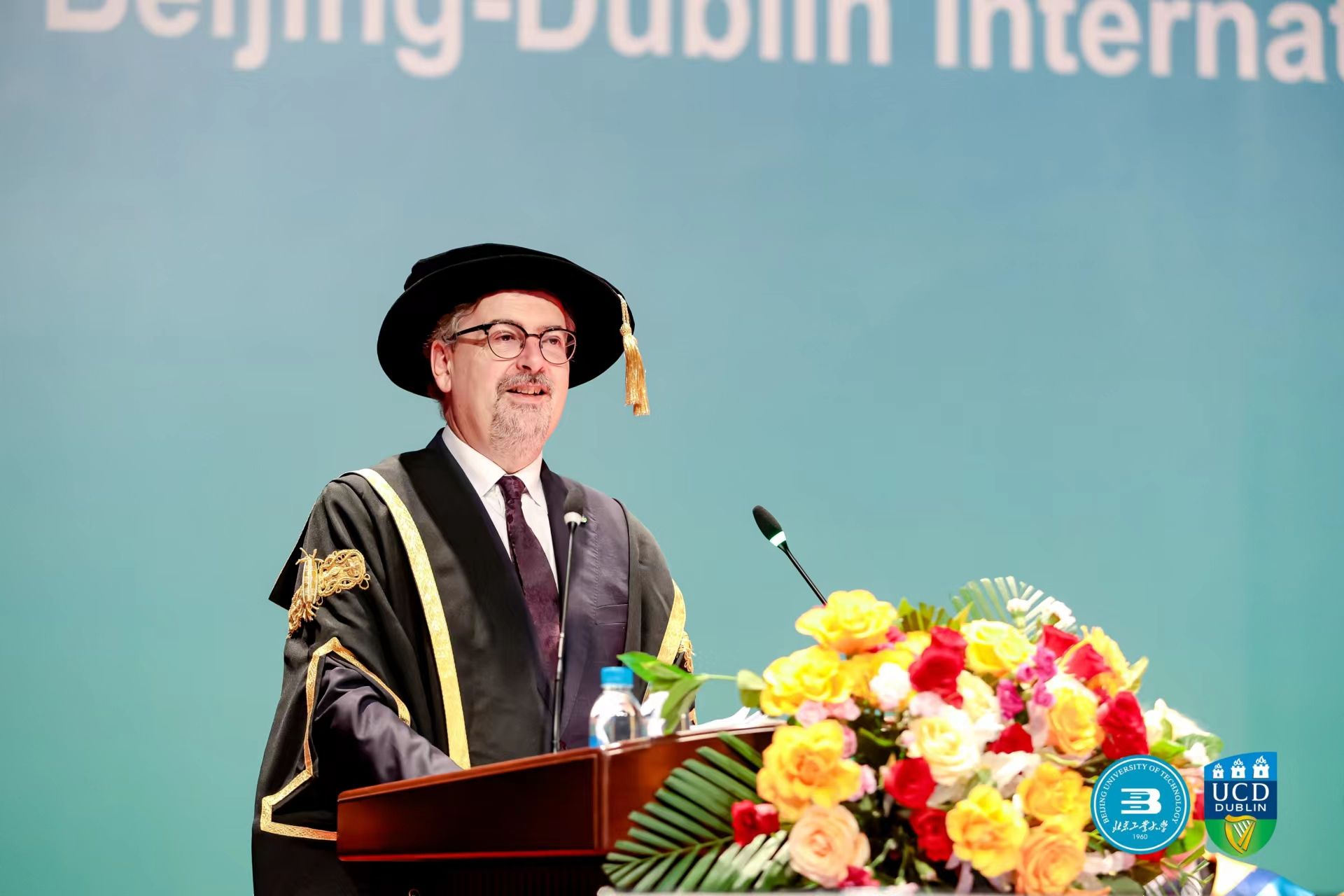 世俱杯sjb官网副院长亨利·麦克劳格林(Henry McLoughlin)在致辞中表示在大学4年的时光里,同学们不仅学会学科领域的专业知识,而且面对疫情遇到的困难,也让自己的内心成长得更加强大。作为特殊时期北工大校园里唯一一个爱尔兰国立都柏林大学的老师,能够有机会与更多的人相识,看到同学们学会了批判性思考,能够分析和质疑新知识,知道如何学习,批判性思维技能将有助于从容面对未来新技术的挑战。他希望同学们与母校保持联系,分享梦想成功的喜悦。
