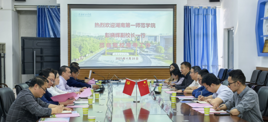 本网讯(通讯员 周术明)4月28日,湖南第一师范学院副校长彭晓辉一行来jdb电子调研本科教育教学审核评估工作,双方在办公楼一会议室举行座谈会。副校长雷存喜出席。