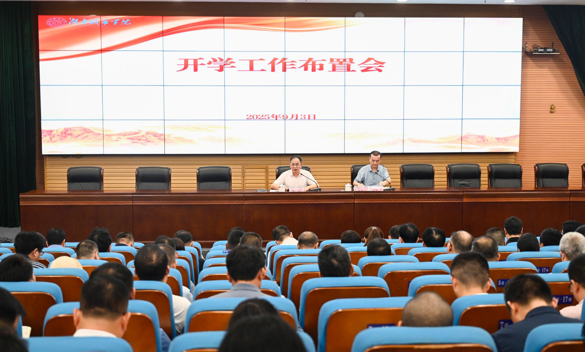 本网讯 93日,学校在图书馆报告厅召开2025年下学期开学工作会议,总结暑期工作,安排部署新学期重点工作。党委书记何振强调,站在“十四五”收官与“十五五”布局的关键节点,要以更加奋发有为的精神状态,更加团结协作的干事氛围,更加求真务实的工作作风,同心同德,务实创新,全力开启学校跨越发展的新征程。会议由副校长雷存喜主持。
