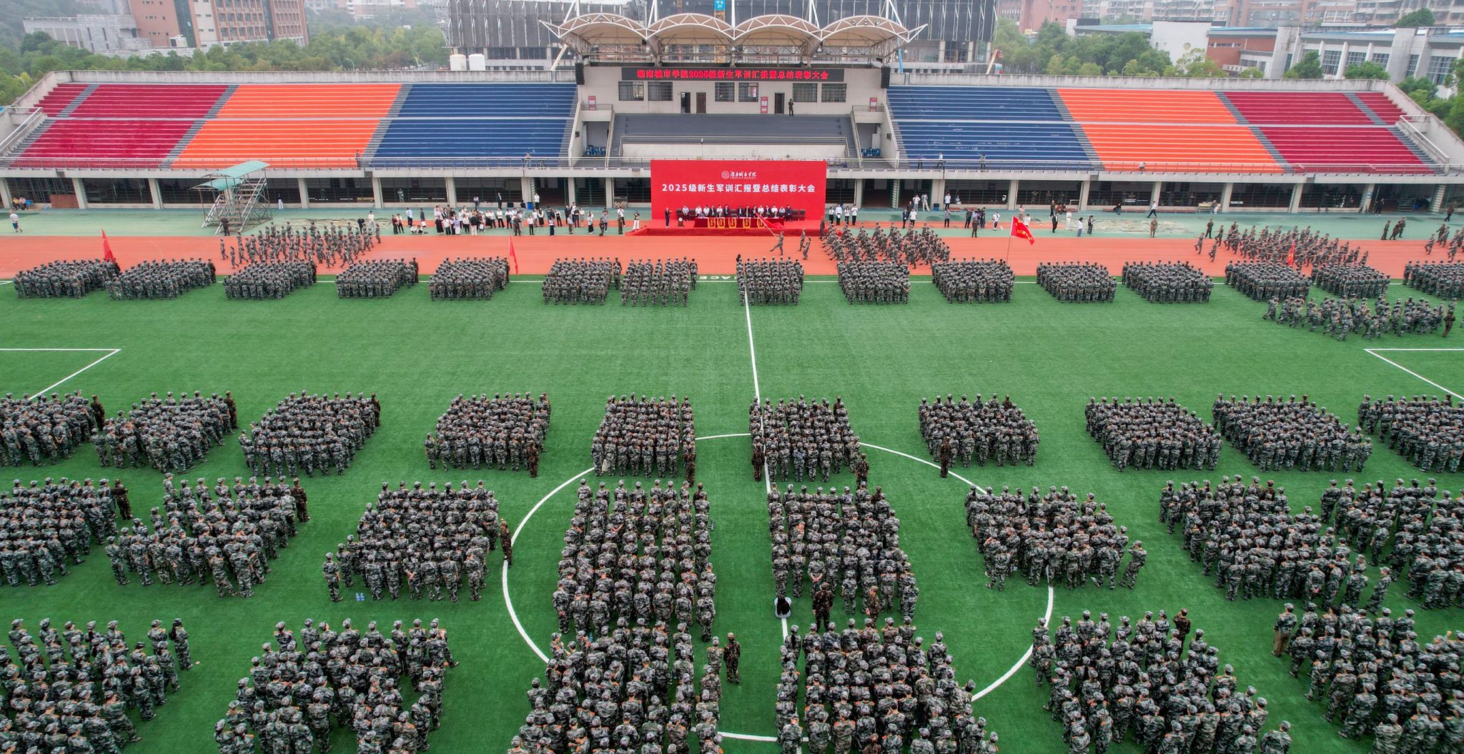 本网讯 9月30日上午8时,jdb电子游戏官方网站2025级新生军训汇报暨总结表彰大会在学校东田径场举行。全场新生身着全套迷彩,以最昂扬的精神面貌迎接来自各方的检验。全体在家校领导出席大会。校党委书记何振宣布军训成果汇报表演正式开始,副校长雷存喜主持大会。