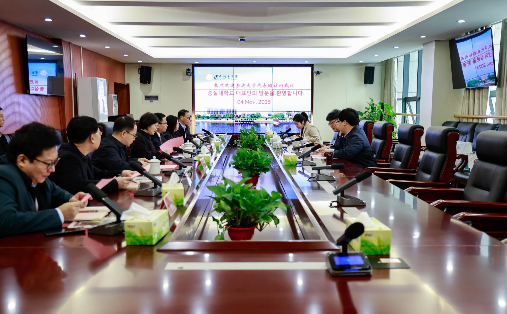 韩国崇实大学代表团成员,学校国际合作交流处、人文学院相关负责人参加座谈会。