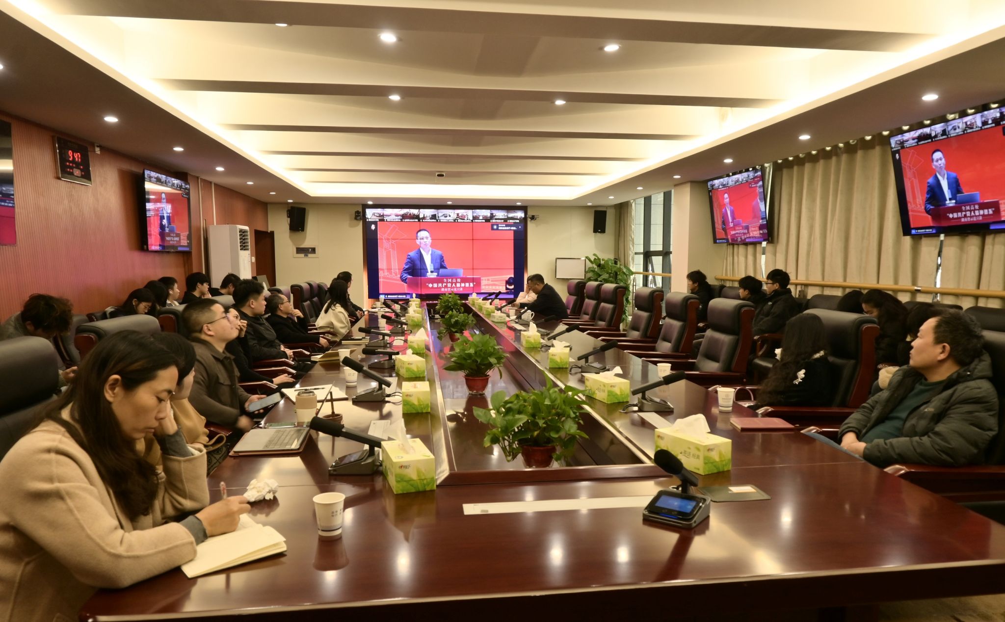 宣传统战部、学生工作部、团委、马克思主义学院等单位负责人以及师生代表集中观看。
