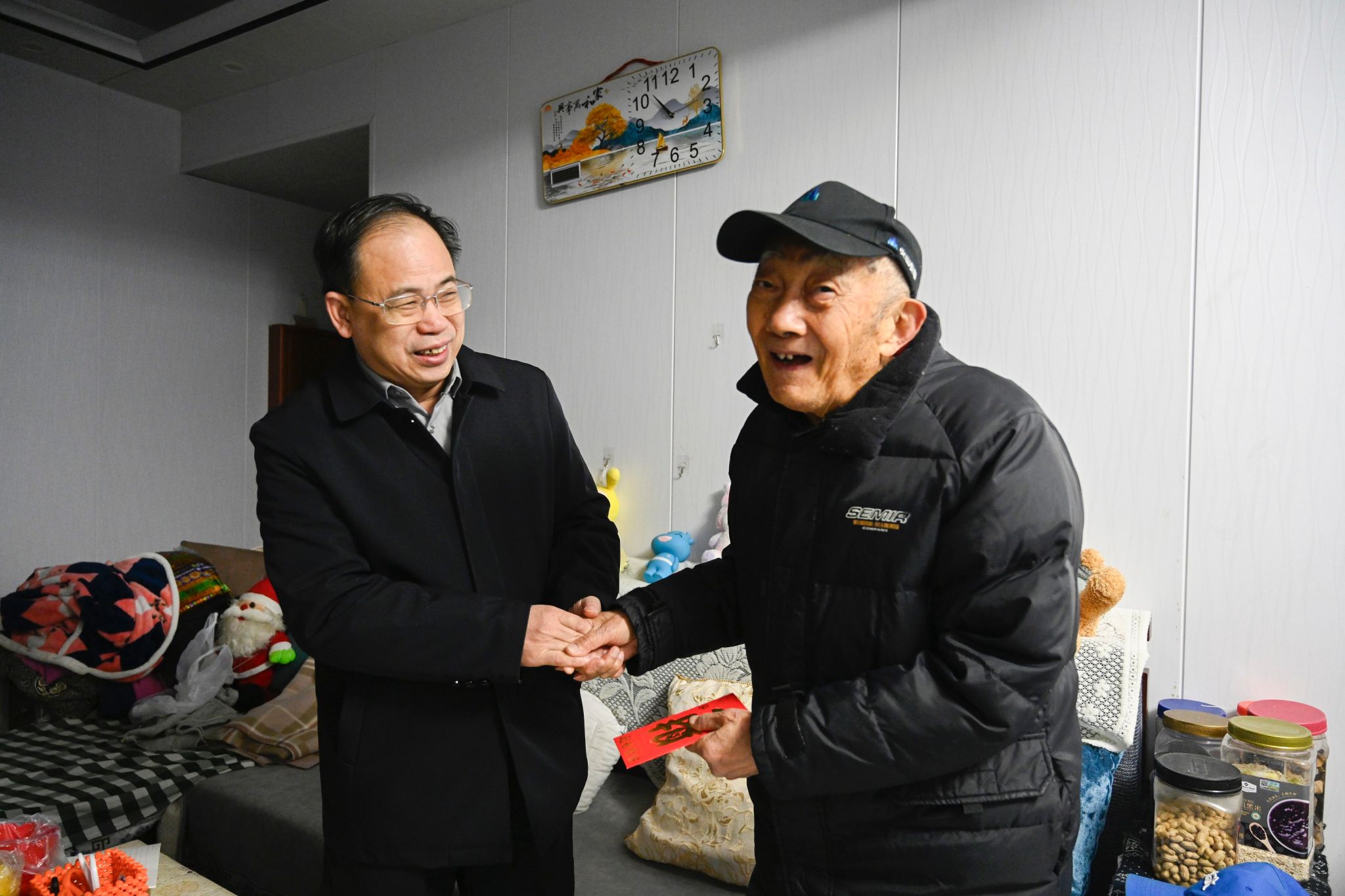本网讯(通讯员 罗延富)2026年春节前夕,校党委书记何振、校长陈瑜、副校长雷存喜在离退休工作处负责同志陪同下,走访慰问了jdb电子部分离退休老干部、特困老同志,为他们送去新春问候和诚挚祝福。