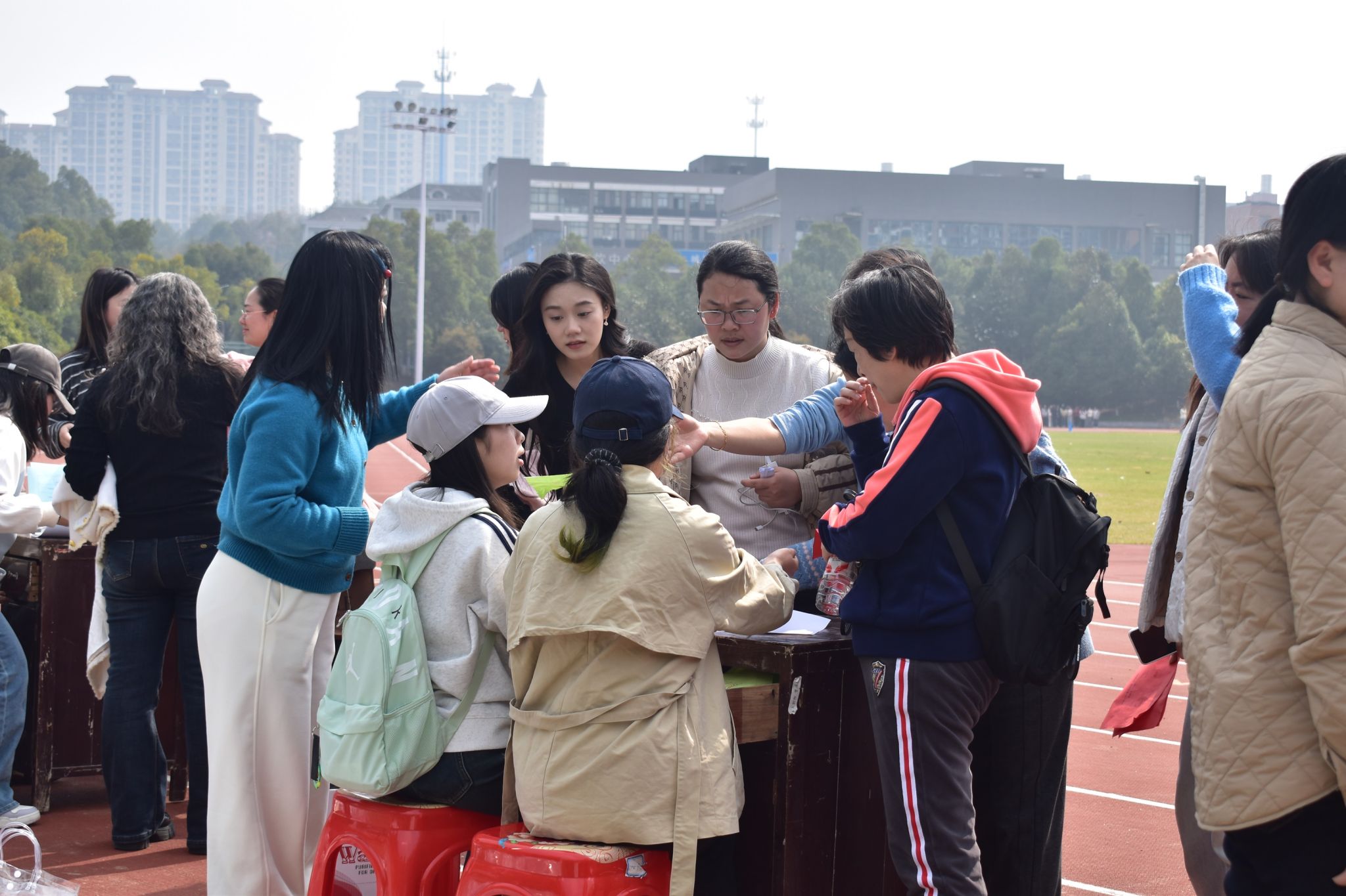 活动现场,副校长徐姝、孙倩为参赛选手发令,随着发令枪清脆响起,慢跑活动正式启动。600余名女教职工精神抖擞、步伐稳健,沿着教学楼、办公楼、桂花大道、兴城广场等区域的校园步道有序慢跑,大家结伴而行、笑语盈盈。