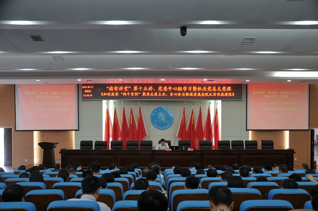 ,学校在逸夫图书馆报告厅举行德智讲堂第15讲,特邀省纪委委员、省纪委第四纪检监察室主任彭龙祥作题为《加快落实“两个责任”聚焦反腐主业,齐心合力推进省属高校反腐倡廉建设》的专题报告。讲堂由学校党委书记李建华主持,在家的校领导,在职在岗副科以上干部,机关全体党员,各党总支部、直属党支部纪检委员,党支部书记参加了此次讲堂。