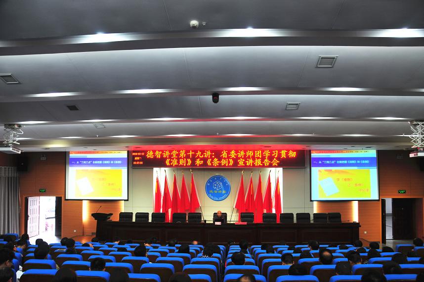 罗成翼在总结讲话中指出,柳行教授的报告引经据典,内涵丰富,语言朴实,不仅是对《准则》、《条例》的解读,更是指导jdb电子落实《准则》、《条例》的辅导报告。他强调,《准则》和《条例》是组织运行、事业发展、和谐团结和自由安全的保障。他要求全校干部和党员要根据干部的实际情况,联系学校的发展大局和当前改革发展中存在的突出问题落实《准则》和《条例》。(文彦波)