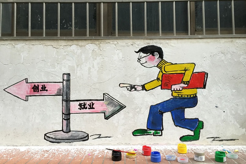 “发奋涂墙”活动本着创意、创作、创新的宗旨,以艺术的形式承载大众创业万众创新的理念,将文化艺术融入到校园之中,传递艺术灵感,展现大学生精神风貌,让校园充满艺术文化气息。