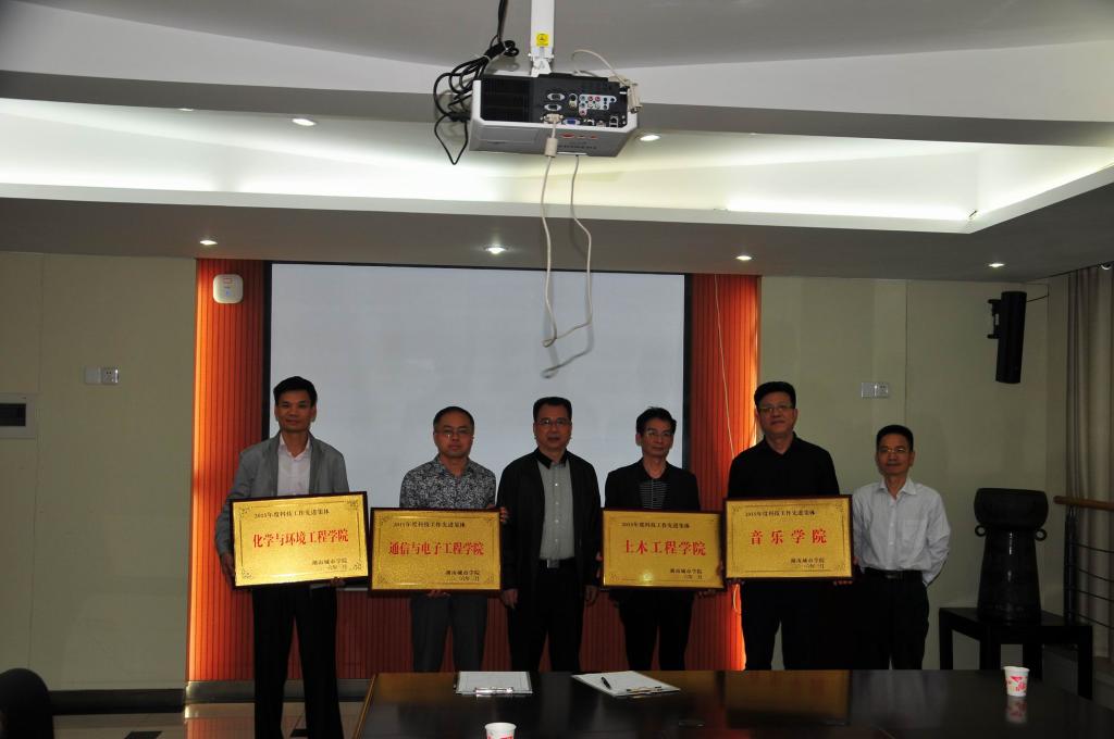 刘辉煌宣布了省(部)级社科成果奖、科技进步奖、科技发明奖以及学校2015年科技工作先进单位、先进个人和管理先进个人获得者名单,并通报了学校“十二五”期间重点建设学科的验收结果。