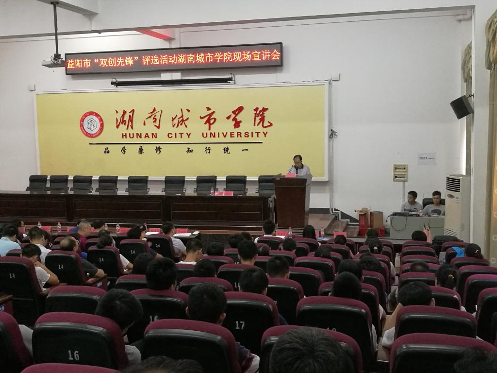 (本网讯)9月6号下午,益阳市“双创先锋”评选活动现场宣讲会在jdb电子电信楼视频会议室举行。益阳市政府常务副秘书长杨光辉,副秘书长、金融办主任欧春芳,团市委书记孔令强,市政府办银行保险科科长宋灿,市委组织部、市新闻中心、市科技局、市人社局、市商务局、市教育局、高新区、龙岭工业园、长春经开区负责人以及学校副校长何振和相关职能部门、二级学院负责人、部分师生代表参加了宣讲会。会议由孔令强主持。
