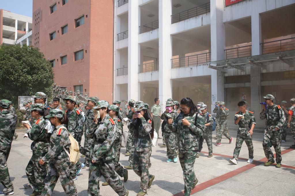 “被困”学生在义务消防员的指挥下用湿毛巾捂住口鼻低姿势快速撤离“起火”建筑物,并有秩序地向煤渣操场疏散。同时搜救队分层对被困人员进行了搜救,30分钟后,疏散人员安全到达指定地点,各军训营教官向总指挥报告疏散人数,所有人员被安全撤离。