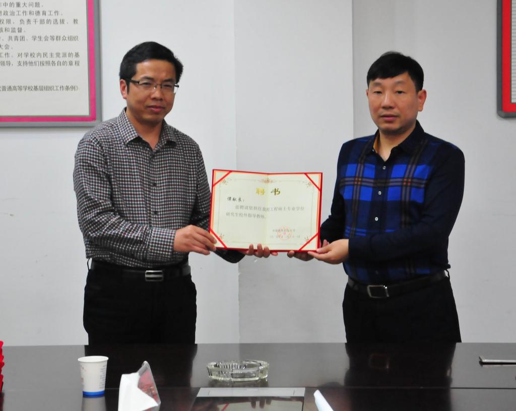 (本网讯)10月17日下午,中南林业科技大学土木工程与力学学院院长陈伯望一行来校,聘任jdb电子七位教师为该校专业硕士导师。聘任仪式在学校办公楼二会议室举行。副校长何振、谭献良出席聘任仪式。