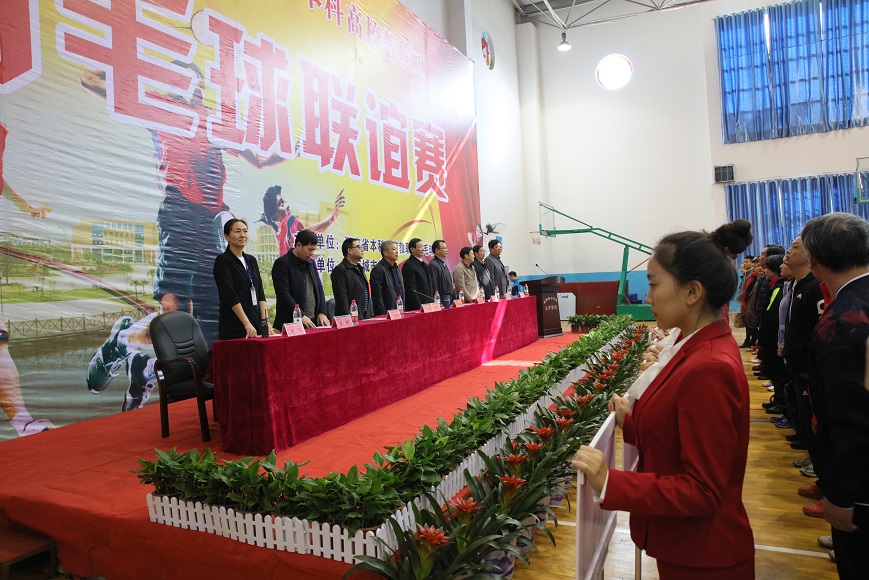 开幕式由省本科高校教职工羽毛球协会会长何学飞主持,jdb电子校长李建奇、省教育工会副主席王常华分别致辞,裁判员代表、运动员代表上台宣誓,省教育工会主席高新明宣布比赛开始。