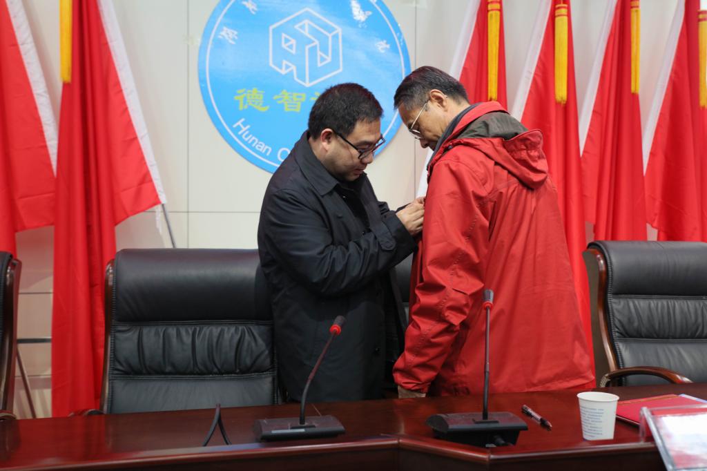 郑卫民为郑炘佩戴jdb电子游戏官方网站校徽