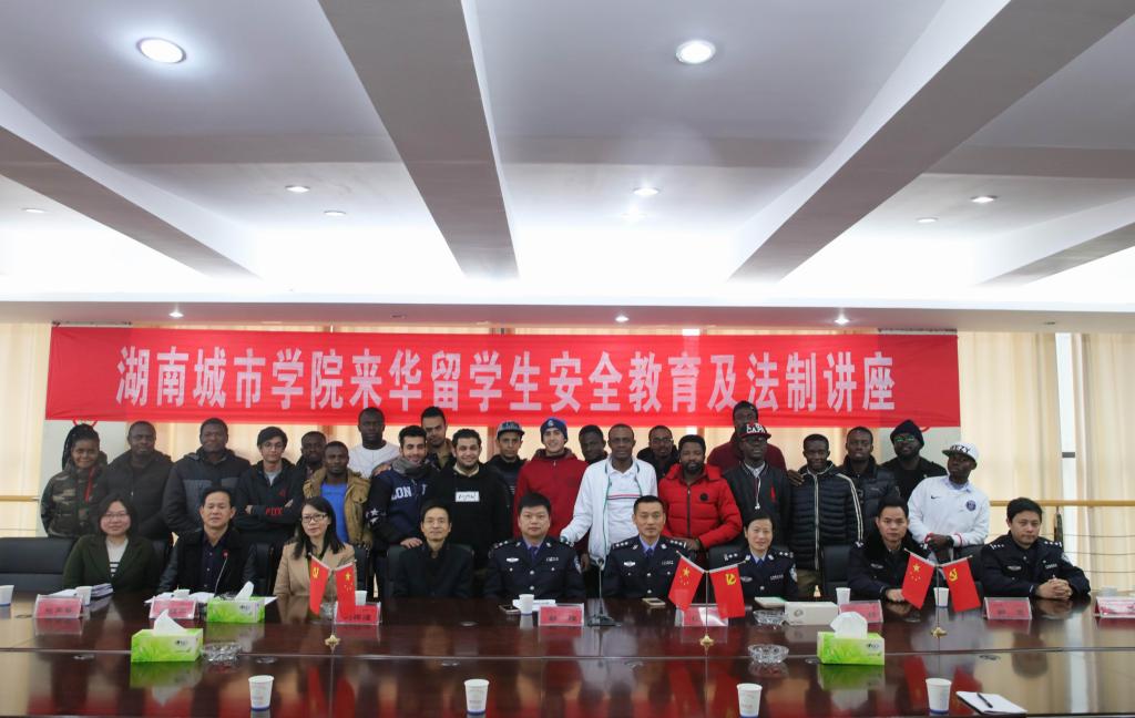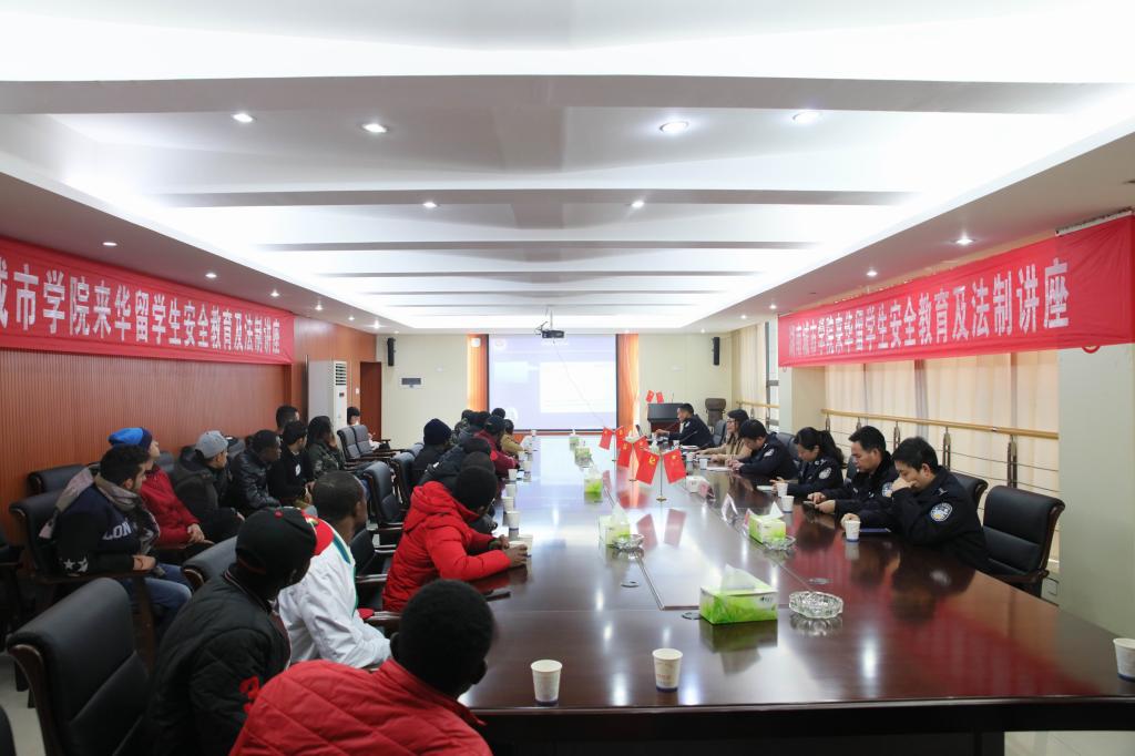(本网讯)12月13日下午,jdb电子来华留学生安全教育与法制讲座在办公楼一会议室举行。副校长刘辉煌,益阳市公安局人口与出入境管理支队副支队长郭胜、大队长张强、外管专干彭娟、市公安局朝阳分局人口大队大队长邹亮、副大队长唐一波,jdb电子文学与新闻传播学院负责人、国际交流处全体人员以及来自加纳、也门和加拿大目前在校的22名来华留学生参加。讲座由国际交流处处长周桂平主持。
