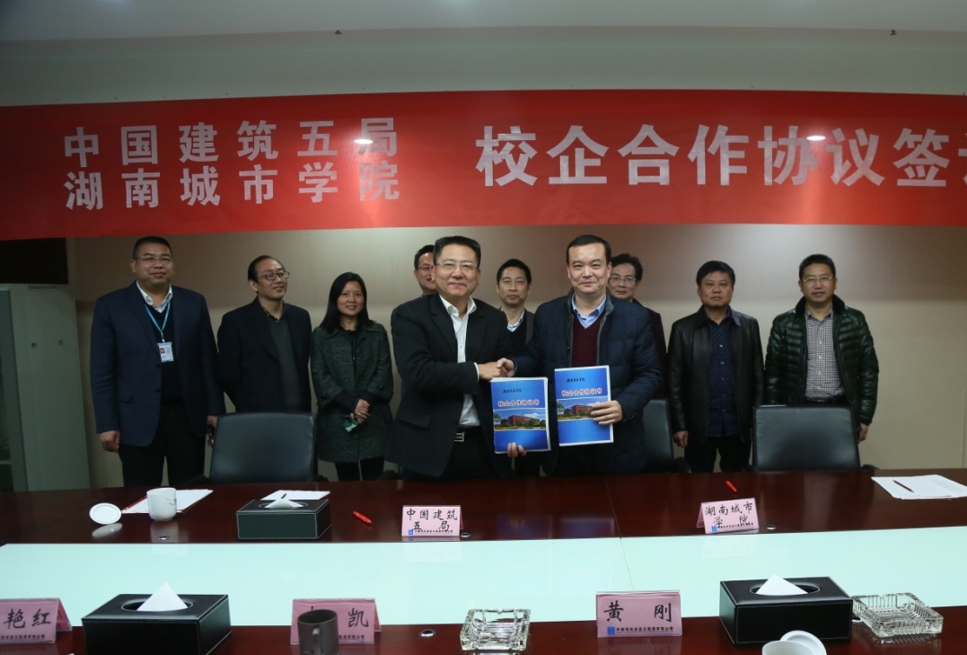(本网讯)近日,jdb电子与中国建筑第五工程局有限公司校企合作签约仪式在长沙举行。副校长雷存喜和中国建筑第五工程局副局长李凯出席仪式并签署了校企合作协议书。