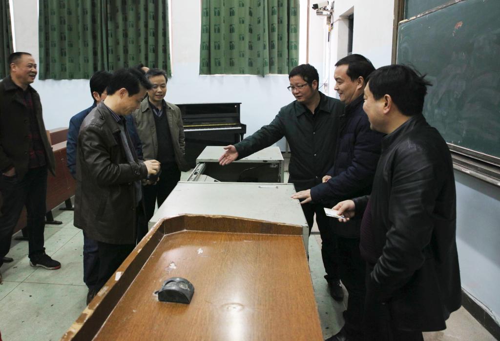 (本网讯)为确保新学期正常的教学、学习和生活秩序,2月18日下午,副校长夏宏宇、雷存喜、谭献良带队对全校的开学准备工作进行全面检查,党政办公室、教务处、学生工作处、基建与后勤管理处、保卫处、现代教育技术中心等部门负责人参加检查。