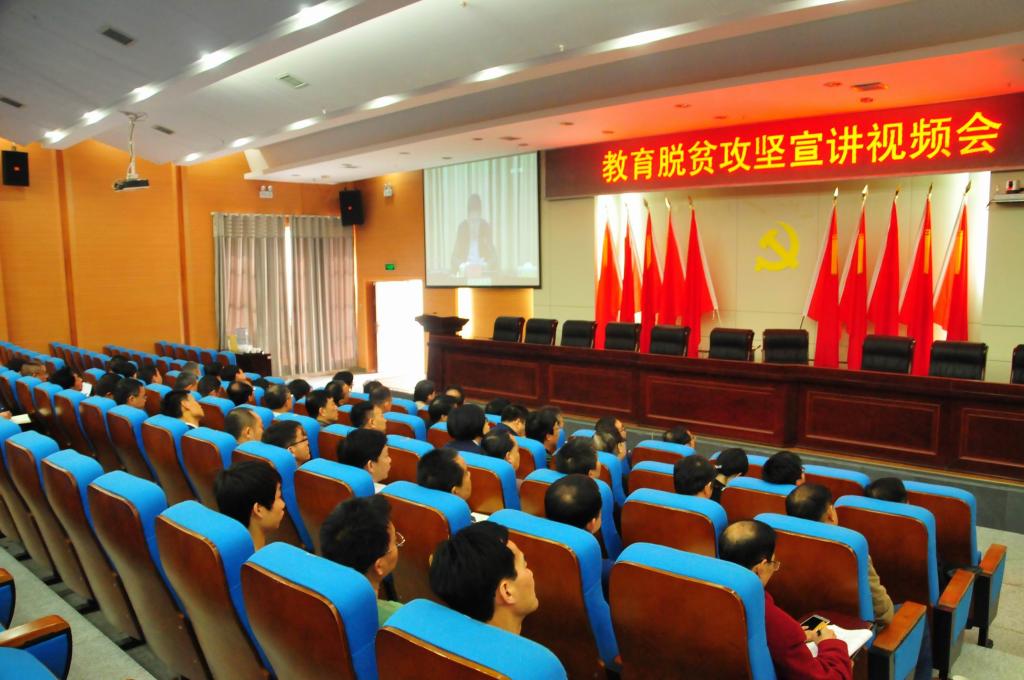 (本网讯)4月18日上午,jdb电子在图书馆报告厅组织收看了省教育脱贫攻坚宣讲视频会议。在家的校领导,各直属单位党政负责人参加了视频会。