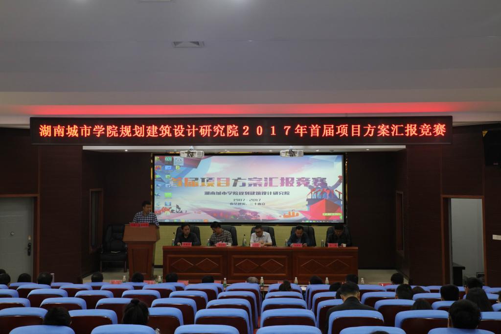 (本网讯)为进一步加强青年教职工项目实战设计水平,提升业务综合能力素质。5月5日上午,规划建筑设计研究院在建规楼学术报告厅举办了以青年教职工为主的首届“项目方案汇报”竞赛。副校长郑卫民、建筑与城市规划学院、土木工程学院、益阳市城市规划设计院、设计院等相关领导和专家出席比赛。