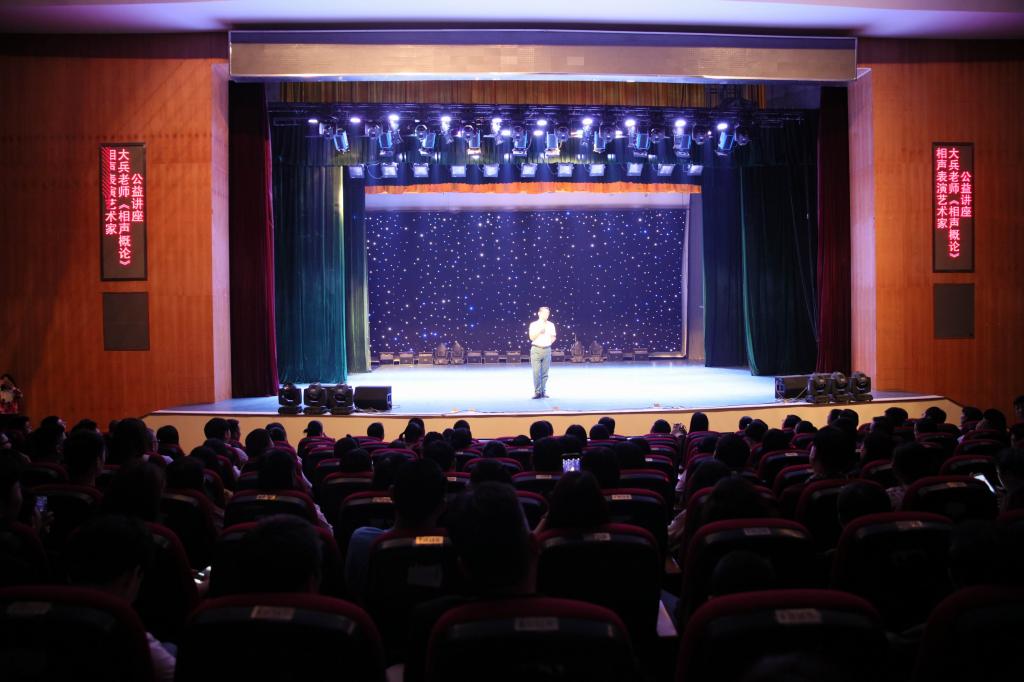 此次讲座题为“相声概论”,大兵为全校师生讲述了他的从艺经历以及在相声、小品艺术道路上孜孜以求的心路历程,告诫在场人员要坚持原创、支持原创作品,艺术作品要接地气。随后,大兵与他的徒弟们相继表演了快板书、相声、方言小品,其精彩的演出赢得了在场师生的阵阵掌声。(文/黄慧雅 图/周文娟)