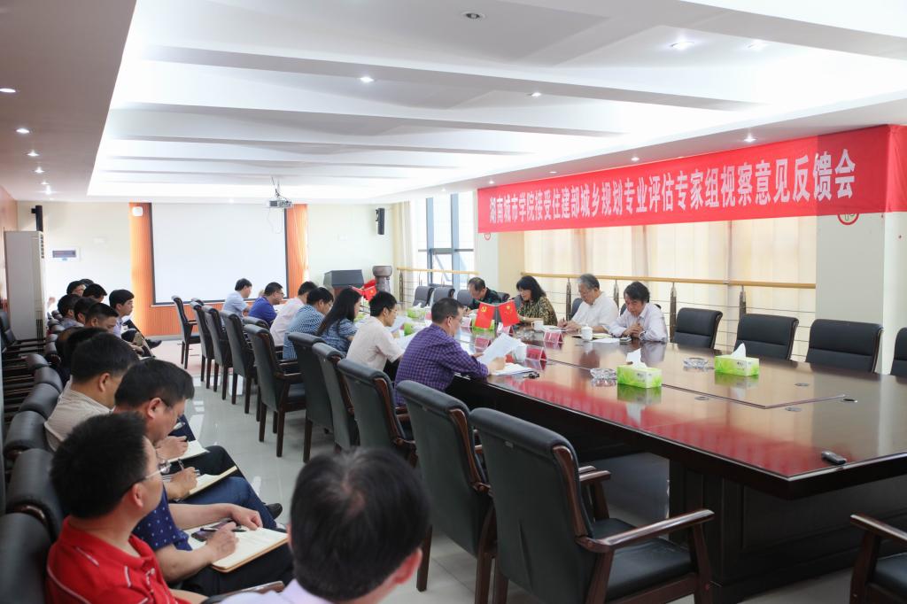 组长陈晓键教授代表评估专家组宣读视察报告,通报了城乡规划专业的教学条件和教学管理现状、办学经验与特色等方面的情况,认为城乡规划专业秉承面向中小城镇,服务基层规划管理和设计一线培养城乡规划应用型高级专门人才的办学定位,强调动手能力培养,强调师生与社会、与校办科技实体和行业的广泛接触,充分发挥校属设计院的平台,吸引人才,广拓科研,为学生实训提供有力保障,构筑城乡规划专业“校企结合产学研一体化”人才培养合作模式。同时在专业办学条件、软件条件建设、师资队伍建设和课程体系设置方面提出了建议。