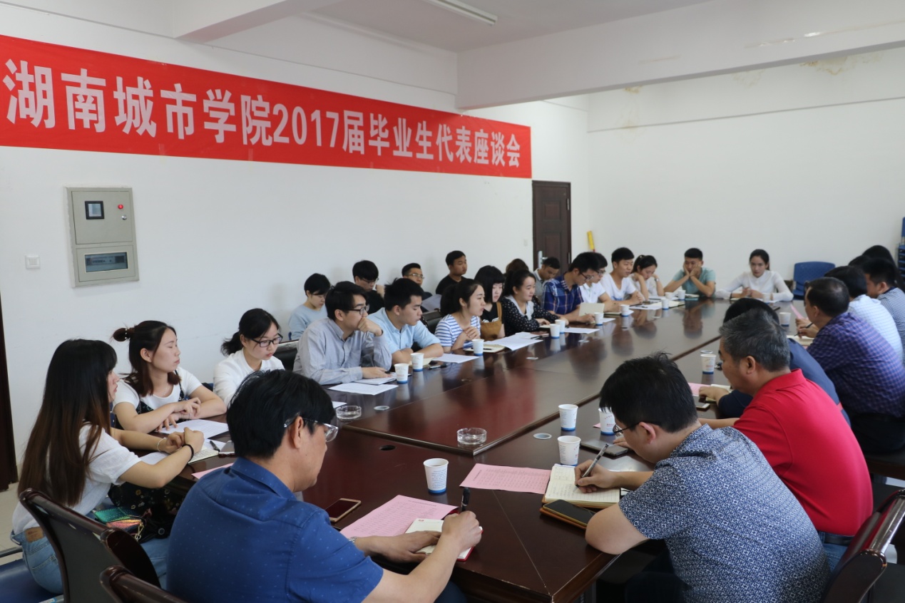 (本网讯)5月26日上午,jdb电子2017届毕业生代表座谈会在二办公楼518会议室举行。副校长雷存喜、谭献良,学校相关部门负责人,来自10个学院的17位毕业生代表以及3名肄业生代表参加了此次座谈会。