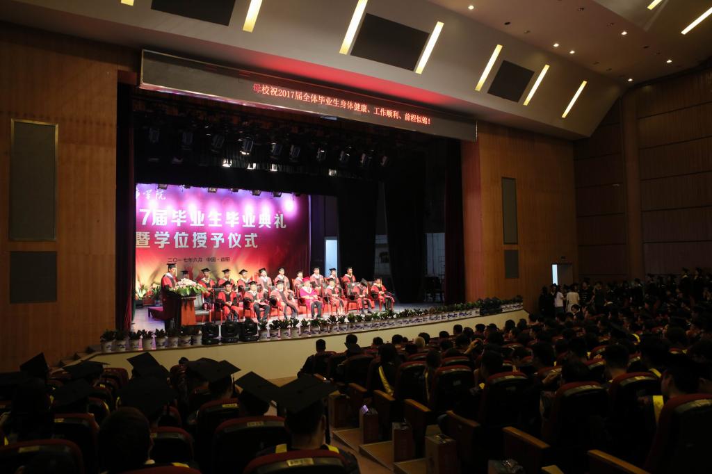 (本网讯)6月9日下午,伴随着嘹亮的国歌,jdb电子2017届毕业生毕业典礼暨学士学位授予仪式在音乐厅隆重举行。在家校领导,相关处室、二级学院负责人,以及500余名毕业生代表出席毕业典礼。典礼由党委书记罗成翼主持。