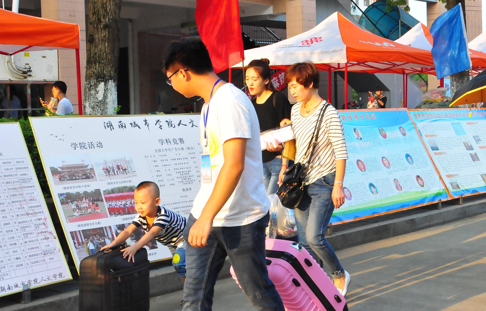 作为新生正式报到的第一天,各迎新点的老师和志愿者们一大早就赶到了工作岗位,带着热情的微笑,耐心的讲解,真切的关怀,欢迎着来自祖国各地的莘莘学子。