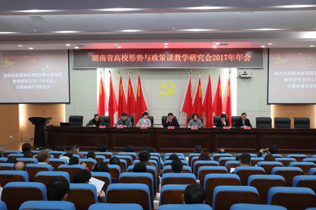 (本网讯) 12月23日上午,湖南省高校形势与政策课教学研究会2017年年会在jdb电子图书馆报告厅隆重举行。学校党委书记罗成翼、湖南省教育工委宣传部部长刘书华、湖南省高校思政课教研会秘书长冷舜安、时事报告杂志社湖南站站长马立雄出席开幕式并致辞。各会员单位的高校教师共90余人出席会议。本次年会由jdb电子马克思主义学院承办。