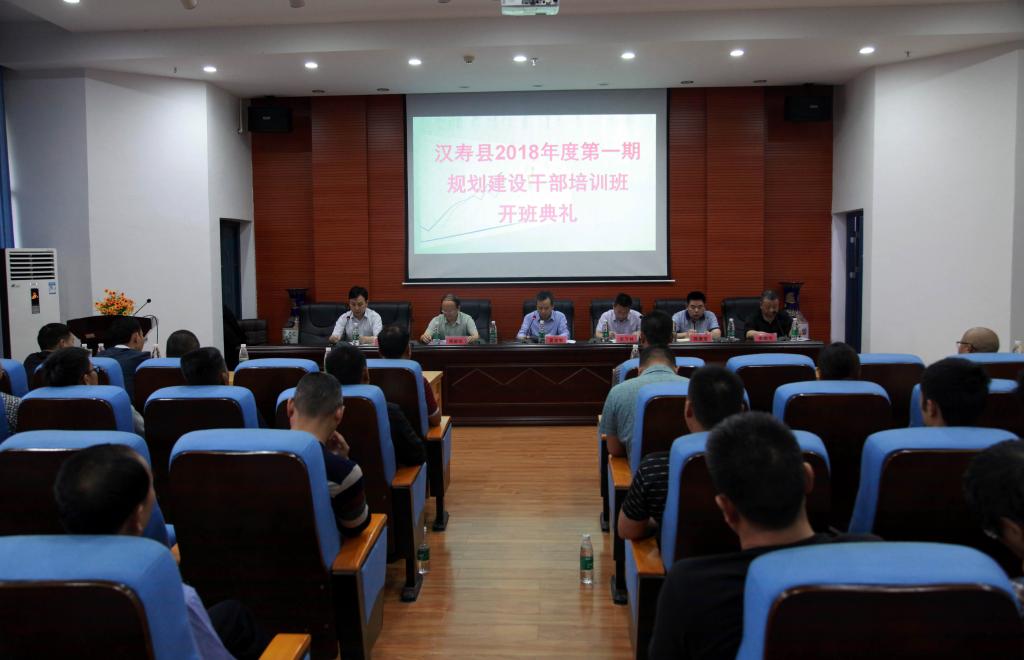 (本网讯)5月22日下午3:00,汉寿县2018年度第一期规划建设干部培训班开班仪式在jdb电子土木楼8楼报告厅举行。副校长夏宏宇,汉寿县副县长宋万林,汉寿县组织部、政府办、住房和城乡建设局相关负责人,jdb电子继续教育学院相关人员以及汉寿县城建规划管理系统42名参训学员参加了开班仪式。