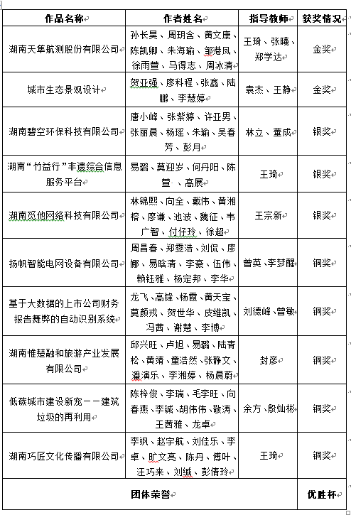 第八届“创青春”湖南省大学生创业大赛终审决赛jdb电子获奖清单