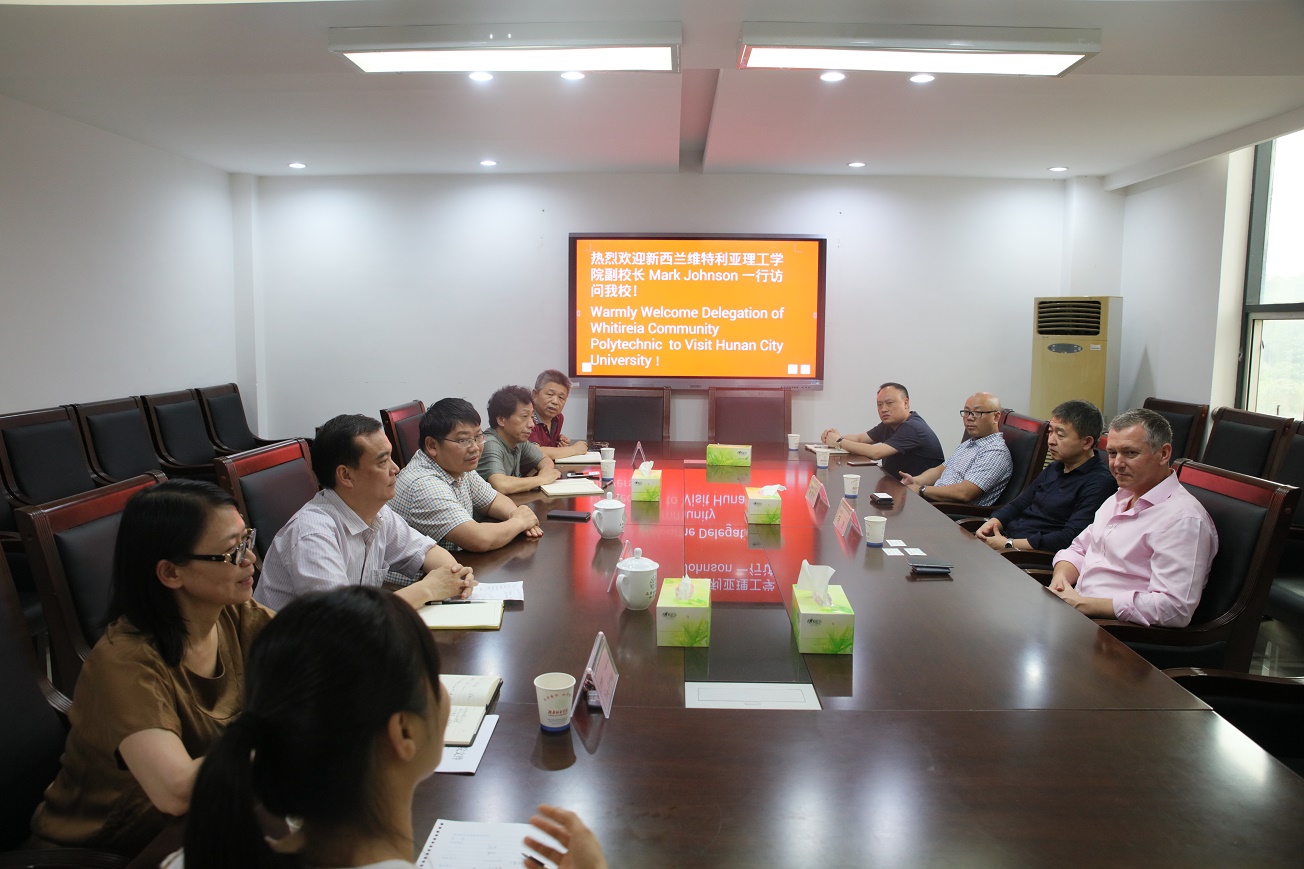 (本网讯)6月23日,新西兰维特利亚理工学院副校长Mark Johnson、国际项目部经理Brian一行访问jdb电子。党委书记罗成翼、副校长雷存喜、国际合作与交流处和艺术学院相关人员接待了代表团一行,并召开了项目交流座谈会。会议由雷存喜主持。