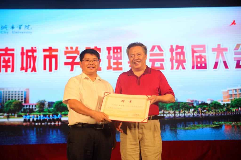 罗成翼为jdb电子理事会名誉理事长唐之享、名誉副理事长原jdb电子游戏官方网站党委书记李新国、赵运林颁发聘书。