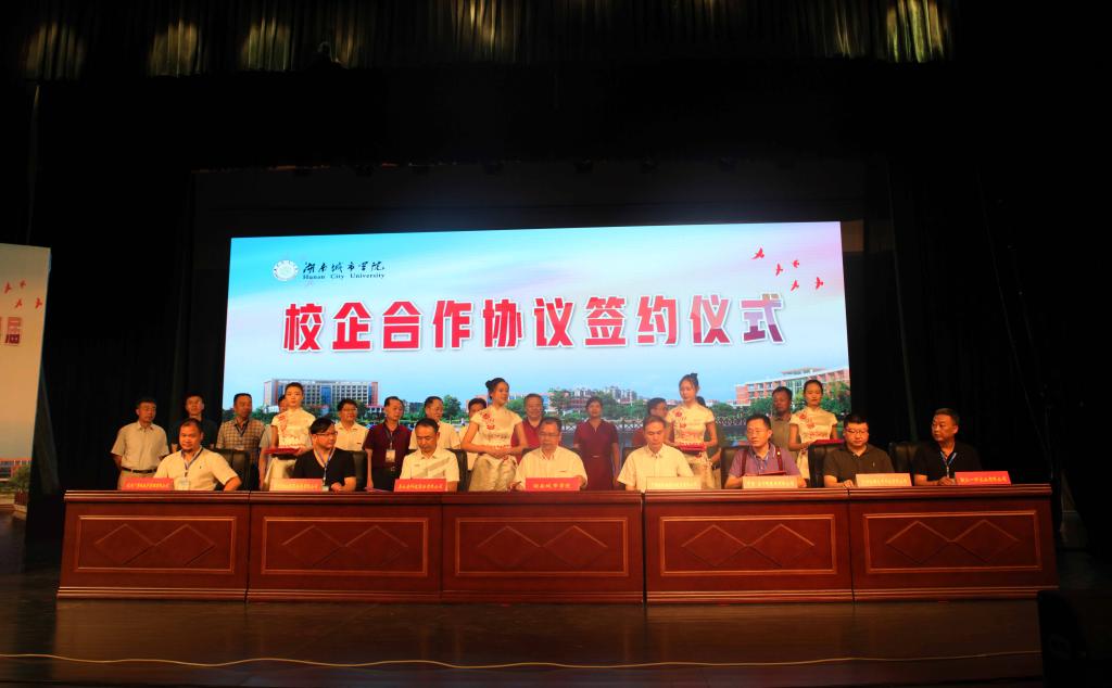 李建奇向中国核工业华兴建设有限公司总经理张卫兵、奥士康科技股份有限公司董事长程涌、中国姜仔鸭集团总裁蒋君、深圳恒金投资发展有限公司董事长曾壮丽、浙江一渺实业有限公司总经理陈辉、杭州广景银投资管理有限公司董事长李文梅和广州朗国电子科技有限公司董事长詹明学颁发了客座教授聘书,并签订了校企合作协议。