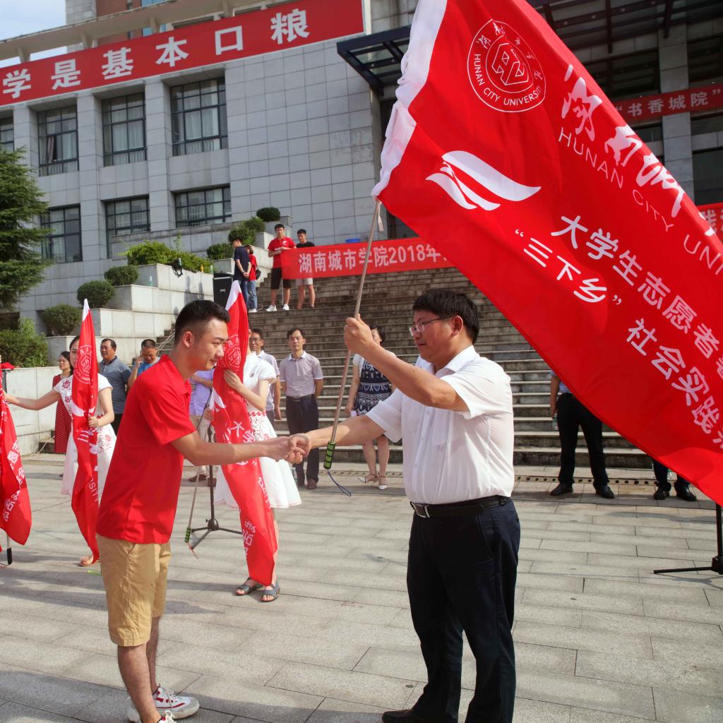 汤放华在仪式上发表讲话,他对师生志愿者们提出了三点希望和要求:一要树立远大理想,锤炼品格意志;二要践行求真务实,练就过硬本领;三要发挥专业优势,勇于开拓创新。要结合国家和社会发展大方向,结合专业,勤于思考,在实际调研中发现问题、思考问题、解决问题。