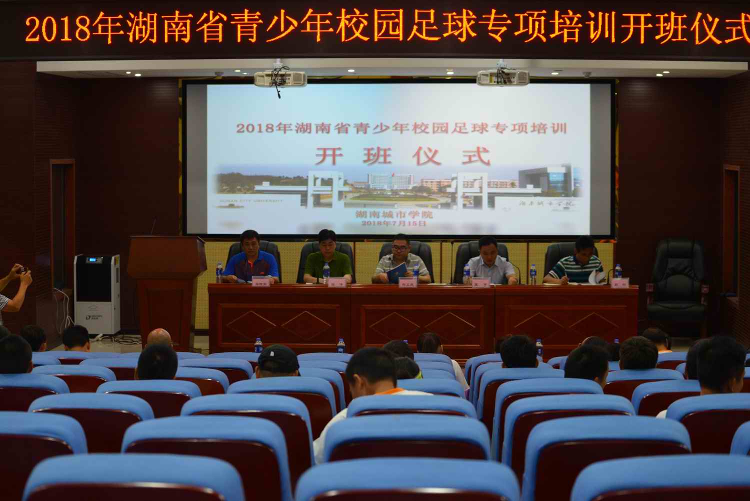 (本网讯)7月15日上午9:30,由湖南省教育厅、湖南省青少年校园足球工作领导小组主办,jdb电子承办的2018湖南省青少年校园足球中小学骨干体育教师培训开班。副校长郑卫民,省教育厅体卫艺处王宇科长、省校园足球办公室主任李泽群,学校教务处负责人、体育学院领导班子成员、本期培训班授课教师、班主任及工作人员等出席了开班仪式。益阳地区、常德地区2018年校园足球中小学骨干体育教师80名学员参加了此次培训。