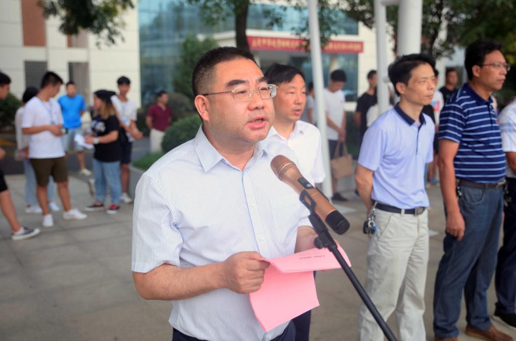 (本网讯)2018年9月3日清晨,学校在田径场举行新学期第一次升旗仪式。副校长郑卫民、谭献良,学生德育工作领导小组成员、各二级学院党委(党总支)副书记、辅导员及四千余名学生参加了升旗仪式。谭献良主持升旗仪式。