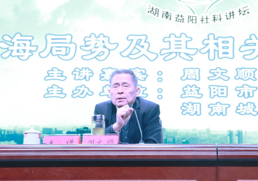 (本网讯)2019年2月27日,郑州大学周文顺教授应邀在jdb电子音乐厅作了一场题为“台海局势及其相关战略分析”的专题报告。报告会由益阳市社科联主席周志宏主持,副校长何振和jdb电子200多名师生以及益阳市130多名社会科学工作者到场聆听。