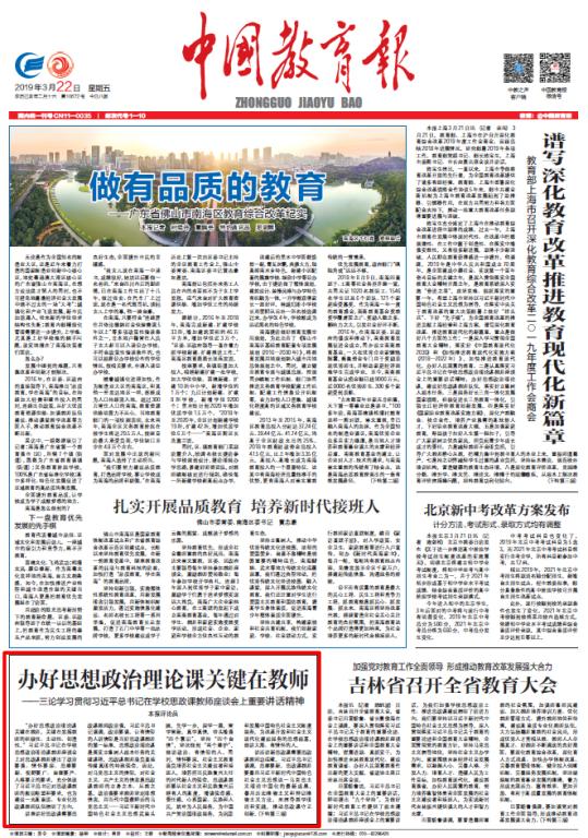 (本网讯)2019年3月22日,jdb电子党委书记罗成翼受邀作为《中国教育报》评论员,就学习贯彻习近平总书记在学校思政课教师座谈会上重要讲话精神,发表评论。全文如下: